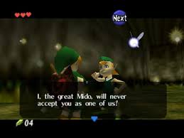 This punk. So he’s a total tool and then he goes and accuses us of killing the Great Deku Tree?! For starters. I did not force myself to overcome my fear of video game skull spiders to come back to these accusations. Secondly. What has Mido every done for the Kokiri? Did he stop Ganondorf? No. Did he save the Kokiri Forest? No. He was a jerk who had an unrequited crush on a Forest Sage and bullied a kid for being different. So no, I don’t feel bad for him in the end credits when he’s all sad because Saria and Link are gone.